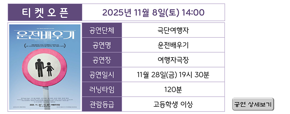 | 2767 | 연극 <행복리 : 그해 여름> 티켓 오픈 | 최고 관리자 | 2025-11-09 | 431 | |