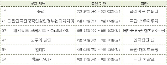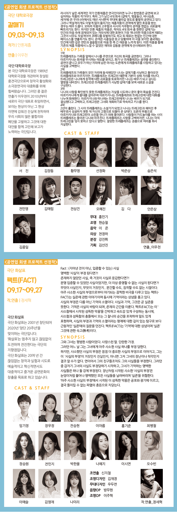 | 공연장르 | 연극(고전명작), 연극(창작), [추가분류] 페스티벌 | ||||||||||||||||||||||||||||||||||||||||||||||||||||||