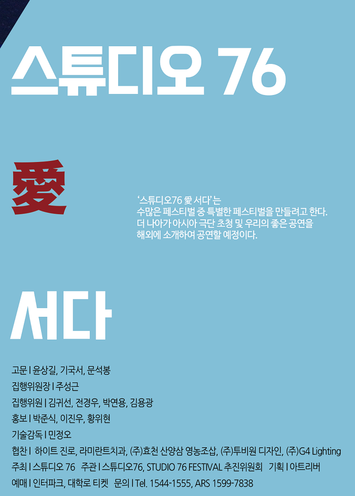 | 제작 | 주관:스튜디오76 페스티벌 추진위원회 | ||||||||||||||||||||||||||||||||||||||||||||||||||||||