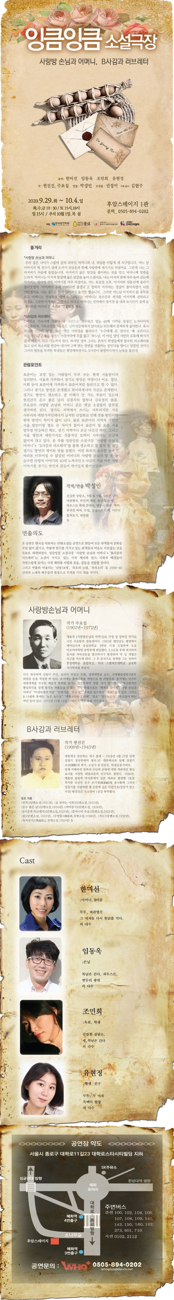 | 공연일자 | 2020-09-29(화) ~ 2020-10-04(일) | ||||||||||||||||||||||||||||||||||||||||||||||||||||||