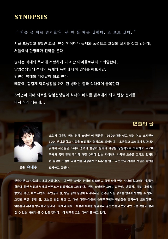 | 공연장르 | 연극(창작), 연극(사실주의), 연극(풍자), [추가분류] 앵콜 | ||||||||||||||||||||||||||||||||||||||||||||||||||||||