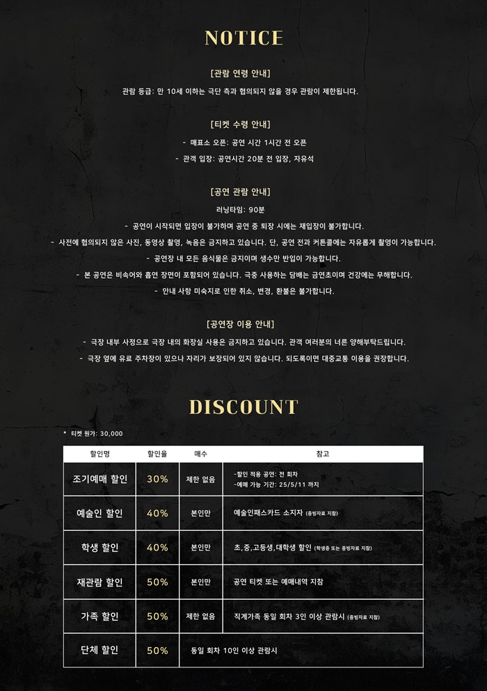 | 할인정보 | * 하단 참조 / 좋은공연안내센터 현장 할인 |