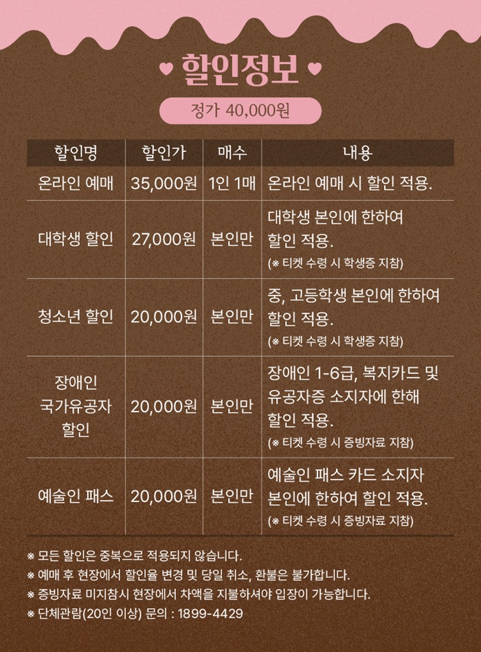 | 할인정보 | * 하단 참조 / 좋은공연안내센터 현장 할인 |