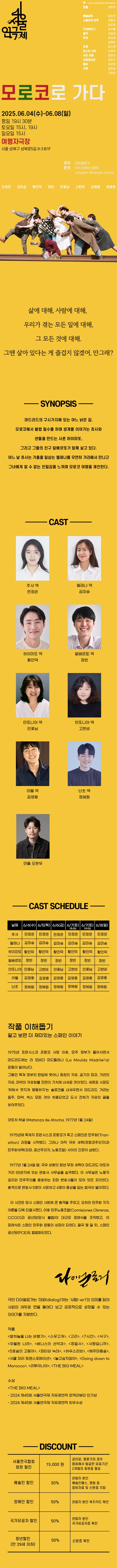 | 공연장르 | 연극(창작), 연극(드라마) | ||||||||||||||||||||||||||||||||||||||||||||||||||||||