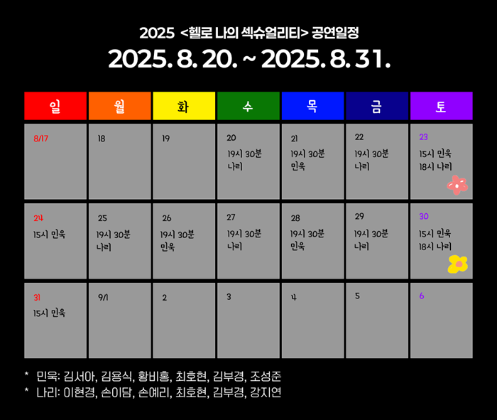 | 공연일자 | 2025-08-20(수) ~ 2025-08-31(일) | ||||||||||||||||||||||||||||||||||||||||||||||||||||||