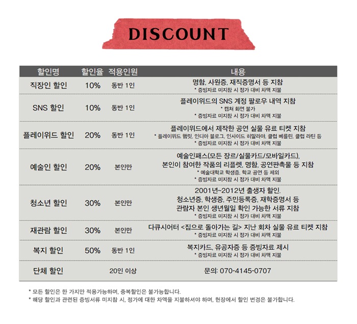 | 할인정보 | * 하단참조 / 좋은공연안내센터 현장할인 |