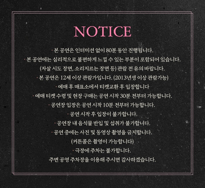 | 공연장소 | 나인진홀 1관 | ||||||||||||||||||||||||||||||||||||||||||||||||||||||
