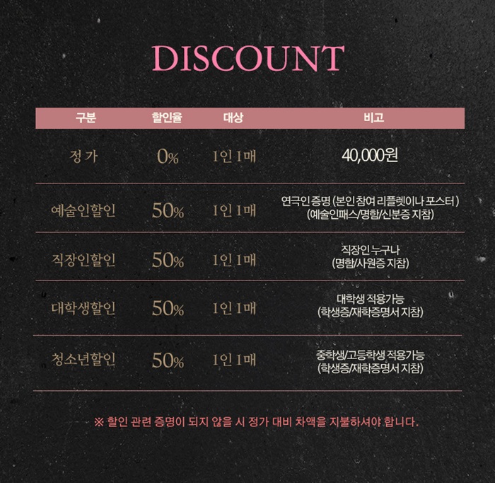 | 할인정보 | * 하단참조 / 좋은공연안내센터 현장판매 |