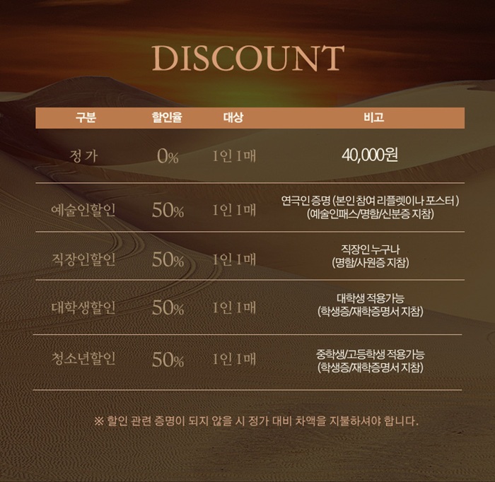 | 할인정보 | * 하단참조 / 좋은공연안내센터 현장판매 |