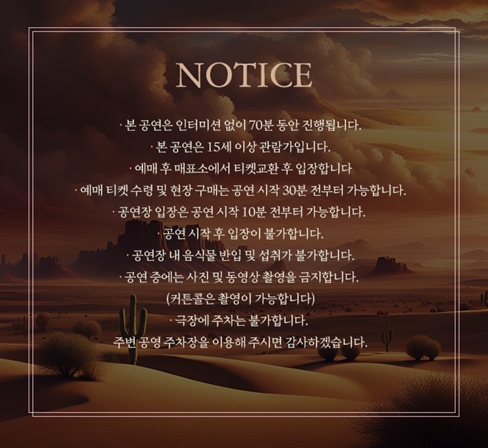 | 공연장르 | 연극(창작), [추가분류] 초연 | ||||||||||||||||||||||||||||||||||||||||||||||||||||||