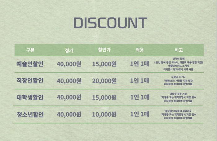 | 할인정보 | * 하단참조 / 좋은공연안내센터 현장판매 |