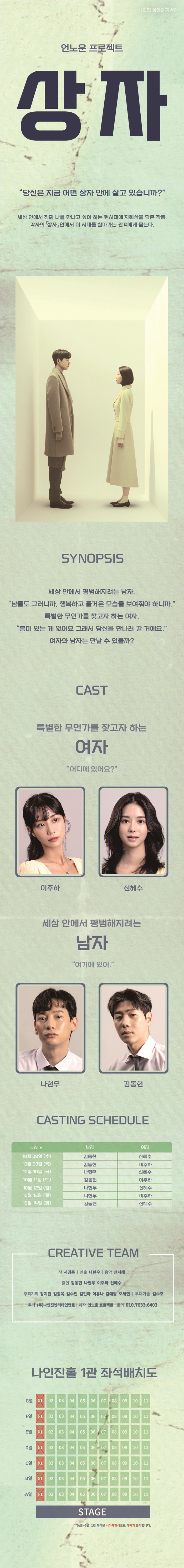 | 공연장르 | 연극(창작), [추가분류] 초연 | ||||||||||||||||||||||||||||||||||||||||||||||||||||||