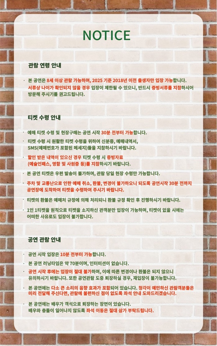 | 공연장소 | 나인진홀 1관 | ||||||||||||||||||||||||||||||||||||||||||||||||||||||