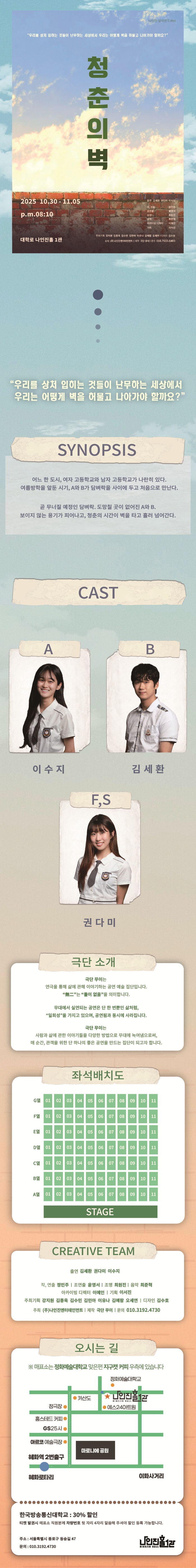 | 공연일자 | 2025-10-30(목) ~ 2025-11-05(수) | ||||||||||||||||||||||||||||||||||||||||||||||||||||||