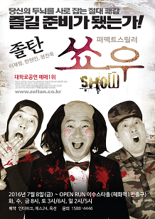 졸탄쑈우는 대학로공연을 앞서서 홍대에서 먼저 시범공연을 선보였고 많은 사람들이 재관람을 원했던 공연이다. 그러나 홍대공연은 대학로 공연의 예고편일뿐 진짜 웃음은 대학로에서 시작된다.