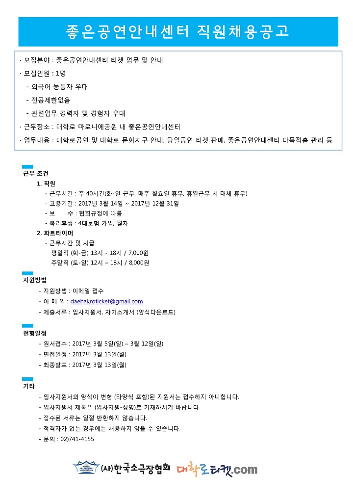 [공지안내]좋은공연안내센터 직원 모집 공고