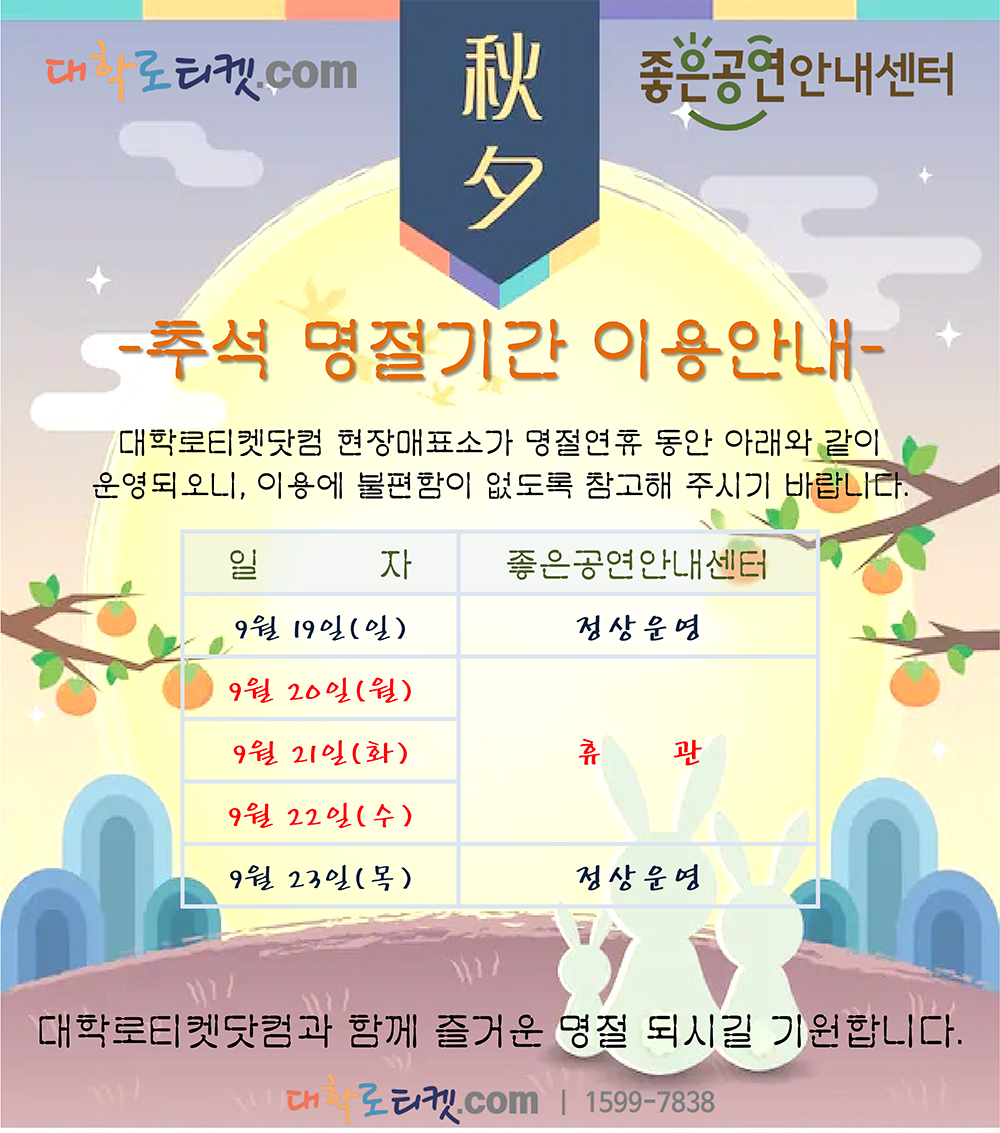 [공지안내] 2019년 설명절 좋은공연안내센터 이용안내
