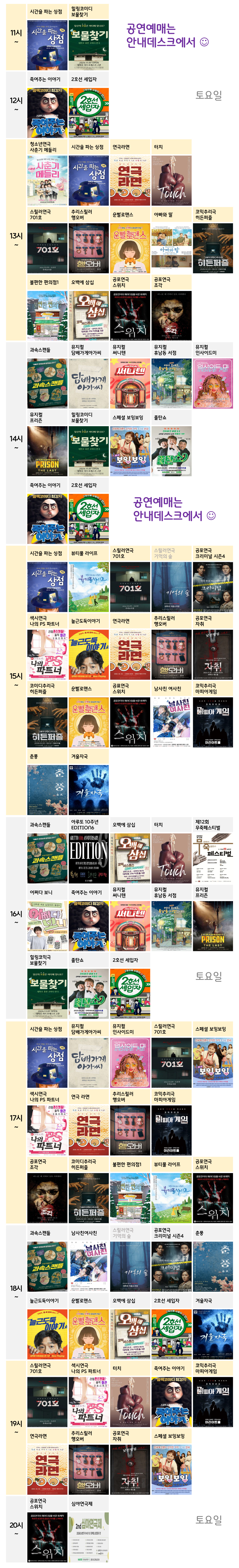 | 116 | 오늘의 공연[3월/일요일] | 최고 관리자 | 2025-09-19 | 389 | |
