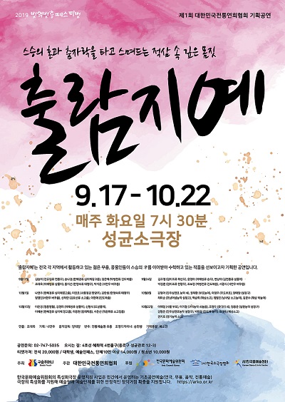 ‘출람지예’는 전국 각 지역에서 활동하고 있는 젊은 무용, 풍물인들이 스승의 才를 이어받아 수학하고 있는 작품을 선보이고자 기획한 다채로운 공연입니다.