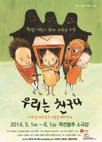 어마어마한 모험이나 사건을 등장시키는 대신 아이들의 일상을 과장하거나 심각하지 않게 그려낸 <우리는 친구다>는 5세 이상의 모든 관객들을 위한 공연으로, 특히 유치원ᆞ초등학교 저학년 어린이들과 부모가 함께 하며 생각을 나눌 수 있는 공연이다.