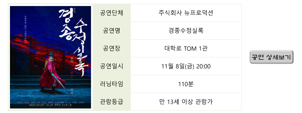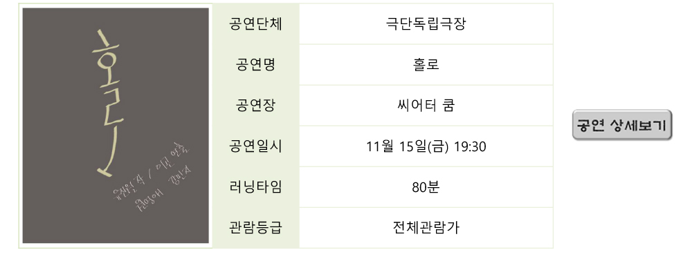 | 2613 | 제 7회 극장동국 연출가전 [홀연했던 사나이] 티켓 오... | 최고 관리자 | 2024-09-25 | 6294 | |