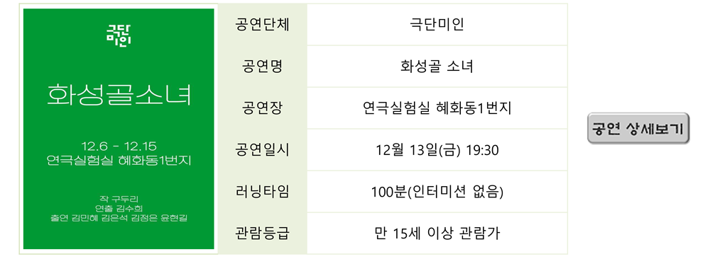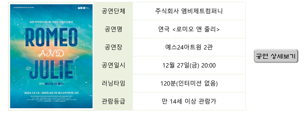 | 2636 | 연극 <51대49> 2024 제24회 월드 2인극 페스티벌 기획... | 최고 관리자 | 2024-11-14 | 4895 | |