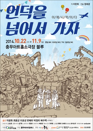 몸은 늙어도 정신은 늙지 않는다. 어르신들의 사랑과 우정도 순수하고 아름다울 수 있을까. 당연히 그렇다. 삶에 찌들고 세월에 찌든 삶의 시간들. 그러나 어릴 때 친구들의 만나 다시 그 순수한 시간으로 돌아갈 때 어르신들의 사랑과 우정도 다시금 아름답게 빛날 수 있다. 연극 <언덕 넘어서 가자>는 짐칫 남루해 보이는 그들의 인생의 아름다운 시절을 기억하며, 그분들의 무지개 너머의 세계로 출발한다. 청춘이 우리의 노력으로 얻은 것이 아니며, 노인이 되는 것 또한 삶의 형벌이 아니듯이 격동의 현대사를 온 몸으로 견뎌온 이 나라의 어르신 세대의 평범하고 빛나는 시절을 기억하는 것만으로도 그 분들의 삶을 응원의 박수를 보낸다.