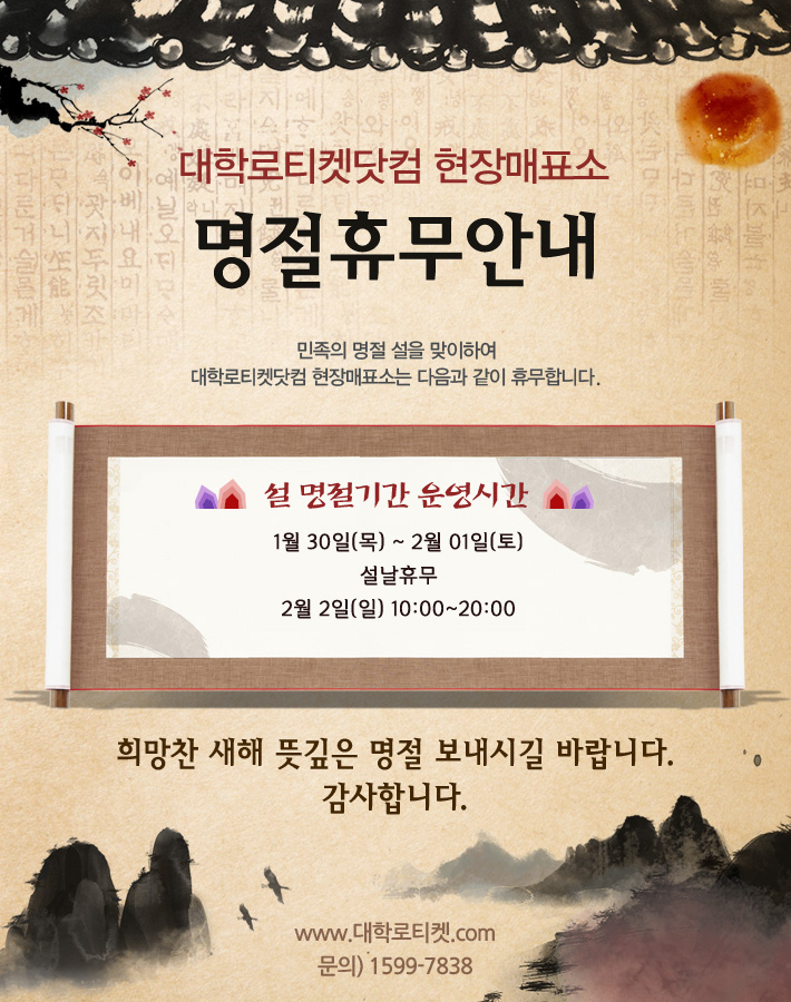 [공지안내] 설 명절기간 현장매표소 운영시간