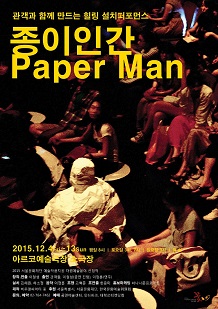 <종이인간>은 인간 실존의 불안함과 연약함을 부서지고 소멸되기 쉬운 ‘종이’라는 재료를 통해 드러낸다. 관객의 몸 전체, 또는 일부에 종이를 덮고 마사지해 떠낸 종이인형들은 공연 중 살아 움직이고, 인형은 자기의 원형인 관객을 이끌어내어 함께 행위를 한다. 인간의 욕망과 절망, 부서지기 쉬운 물질성이 드러나고, 종이인간들은 바람, 물, 불 등에 의해 그 소멸을 맞이한다. 공연예술의 경계와 벽을 허무는 이 새로운 형태의 공연은, 관객이 공연에 참여하게 하여, 극의 이입을 통해 내적인 사유를 함께 할 수 있도록 한다.