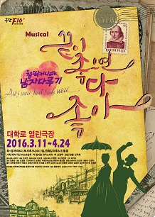 | 888 | 뮤지컬 <끝이 좋으면 다 좋아> 앵콜공연 티켓오픈 | 최고 관리자 | 2016-03-11 | 7756 | |