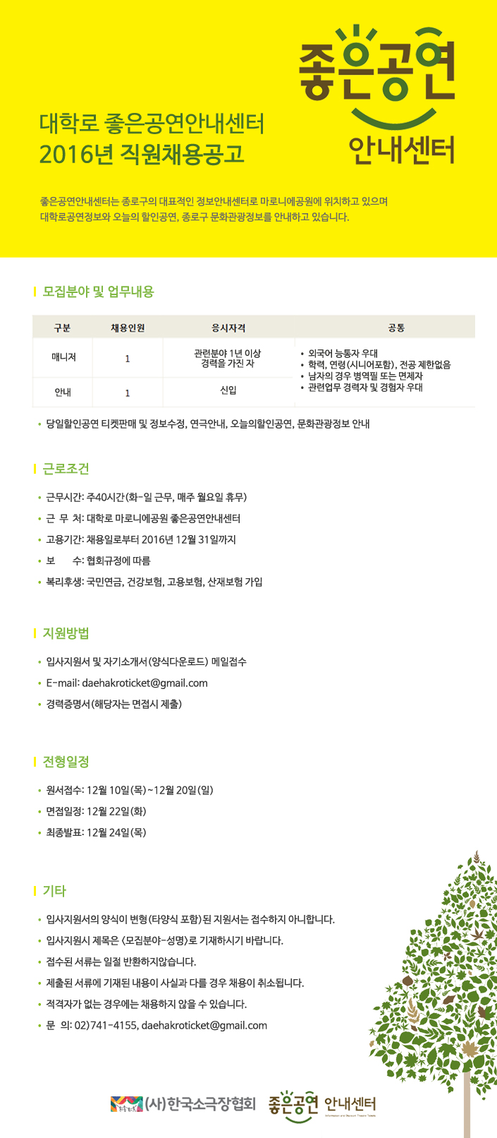 [채용공고] 대학로 좋은공연안내센터 직원모집