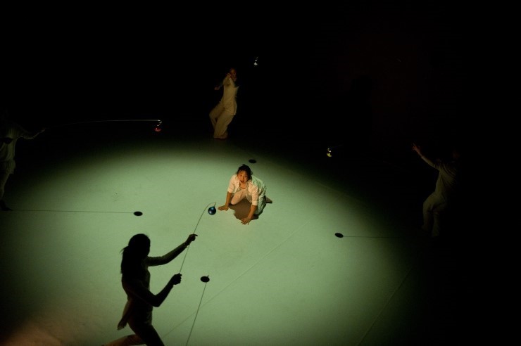 연극 <나의 검은 날개>는 와 전형적 연극의 형태는 아니라는 점에서는 유사하나 훨씬 다른 지점에서 밀도를 높였다. 가 배우가 읊는 대사로 드러나는 언어 자체에 집중을 했다면, <나의 검은 날개>는 신체의 움직임을 통한 이미지 구축에 집중 했다. <나의 검은 날개>는 신체극이라고 보아도 무방할 만큼 대사가 거의 존재하지 않는다. 각각의 장면은 독립적으로 존재하며 각자 나름의 의미가 부여되고 있다. 물론 그 전체를 엮으며 통과하는 하나의 흐름은 존재한다. 그 것은 ‘불안’이다. 알랭 드 보통의 저서 [불안]에서 말하는 다섯 가지 형태의 내용을 모티브로 하여 다양한 상황과 에피소드를 그리고 있는데, 그 내용은