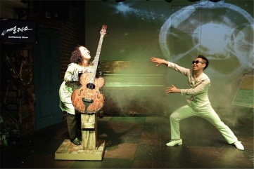 이렇게 이 연극은 꿈과는 다른 희망 없고 비참한 현실에 절망하는 주인공 독백과 함께 아픔을 가진 사람들의 이야기로 시작한다. 언청이이면서 다리를 저는 그녀는 도시와 떨어진 어느 외딴 예술공장에서 공장의 주인인 악덕사장의 지시 아래 말 못하고 묵묵히 일만 하는 어벙한 악기 수리공이다. 그리고 그 곳엔 얄궂지만 넉살 좋은 의상수리공이 함께 밤낮 없이 일한다. 의상수리공 역시 멋진 드러머가 되는 꿈이 있었지만 돈에 묶여 일하는 처지였고 그렇게 그들은 절망 속에서 매일 본인의 꿈과는 멀어져가고 있었다.