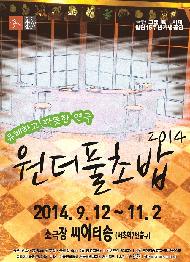 즐거운 복희 극 내내 사람의 집단이기주의란 난 저런사람이 아니겠지하면서 반성도 하게되는. 배경이 호수가펜션이라서 그런지 호수가에 비쳐지는 모습이 무대에 매우 잘표현되 있고 초로 이용한 장면은 정말 강하게 와닿았다.보는 내내 지루함도 없어 추천하기 좋은극이였다. | 권미성 | 2014-09-06 |