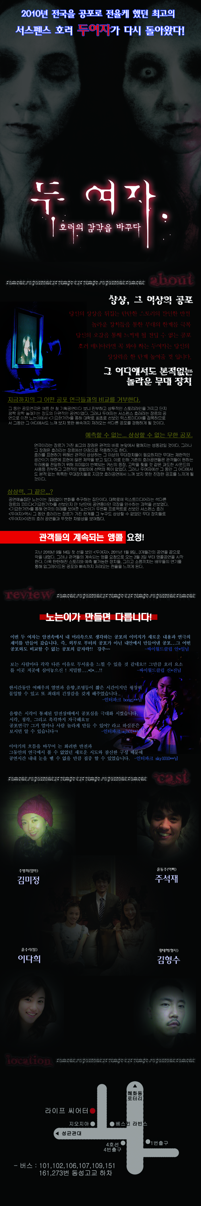 | 공연시간 | 평일 8시/토.일 3시 6시/월쉼 |