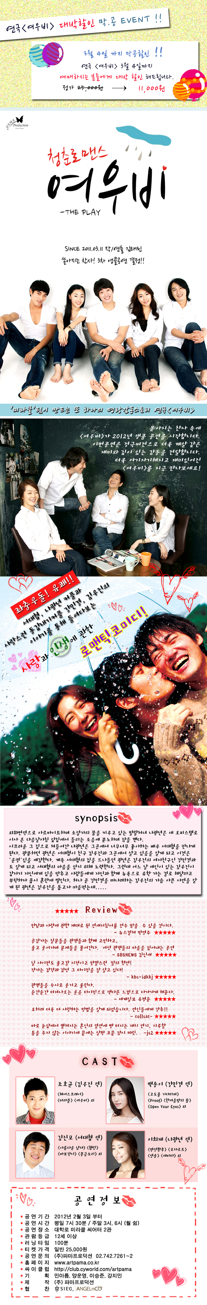 | 공연시간 | 평일 7시30분 / 주말,공휴일 3시,6시 / 월 쉼 (단,3/1 2시,5시 2회공연) |