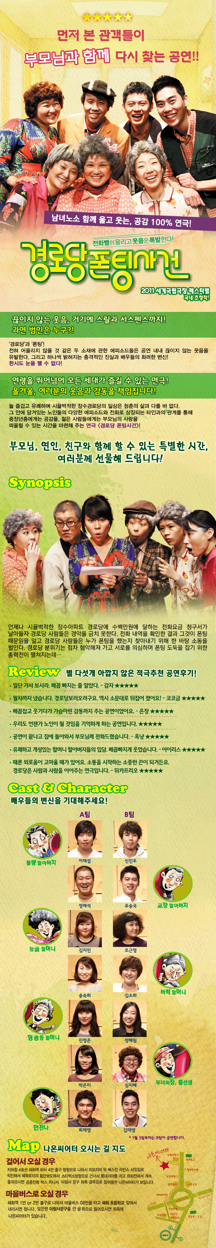 | 출연자 | 이재섭,신진우(불량할아버지) 정래석,유승국(교장할아버지) 송숙희,김소희(버럭할머니) 김지민,오근영(능글할머니) 진영은,정혜림(뒷북할머니) 박은미,심지혜(부녀회장) 최재영,김태영(한전나) |