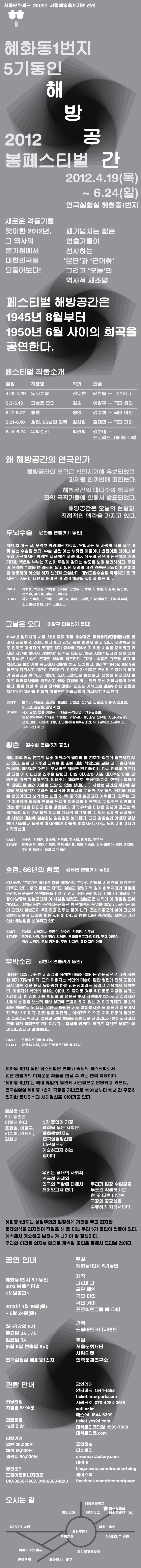 혜화동1번지 5기동인 2012 봄 페스티벌 〈해방공간〉