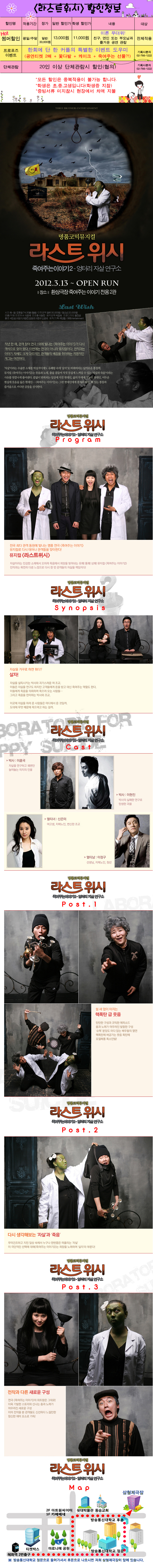 딱히 뮤지컬에 경계를 지을 필요는 없지만, 많은 사람들이 컬트 뮤지컬이라고 이름 짓는 것들이 있다. 예를 들어 성적 소주자의 이야기를 다룬 록뮤지컬 <헤드윅>이라 던지 엽기, 호러의 분위기를 이끌어 내는 <록키호러쇼>와 같은 뮤지컬을 사람들이 컬트 뮤지컬이라고 말한다. 이번에 찾아간 라스트 위시는 괴기스런 분위기, 웃음기를 상상 할 수 없는 주제로 관객들을 찾아가는 일종의 컬트뮤지컬이 아닐까 하는 생각을 해보았다.