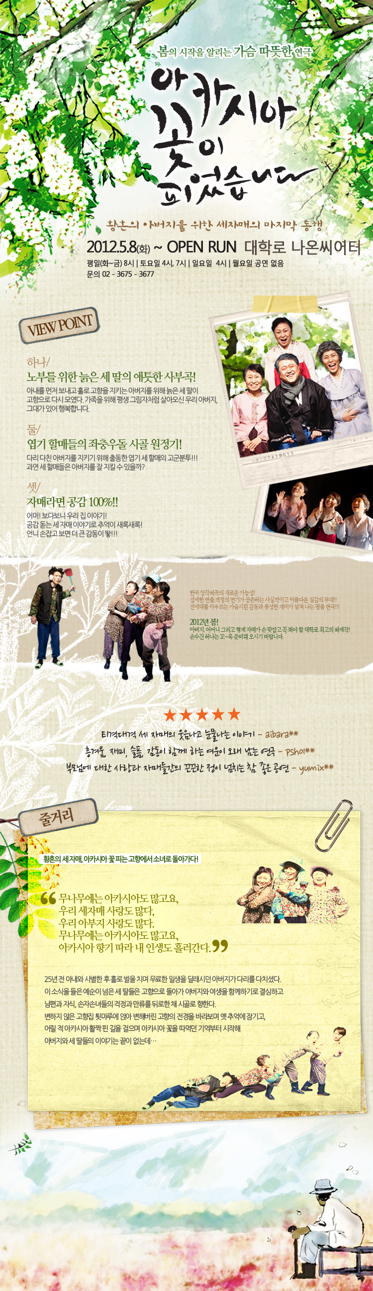 | 공연시간 | 평일 8시/토 4시,7시/일 4시 (월 쉼. 단 5/29 공연없음) |