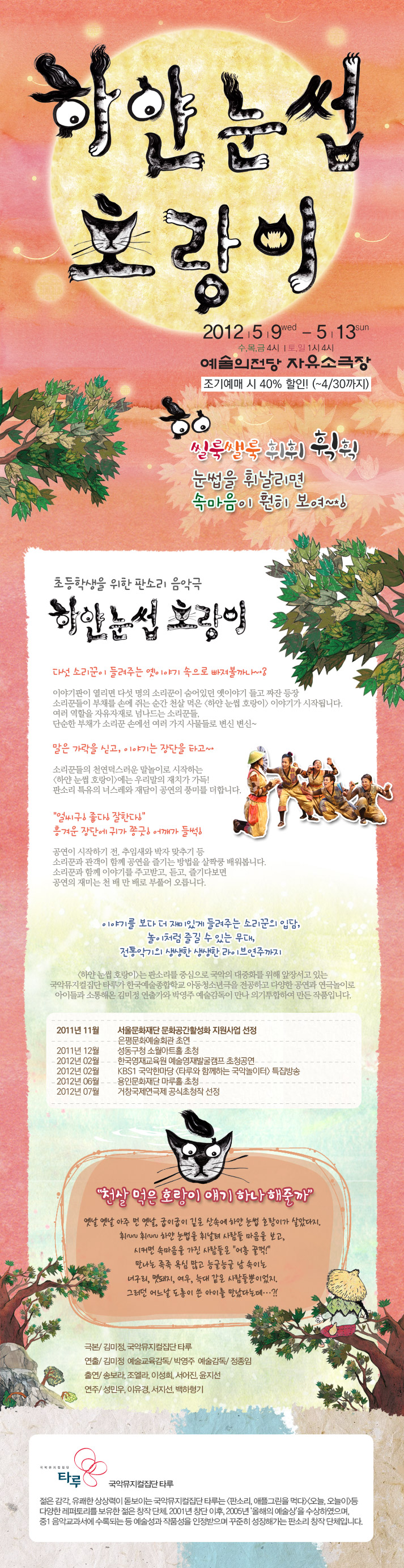 | 제작 | 제작: 국악뮤지컬집단 타루 / 후원: 은평구시설관리공단 |