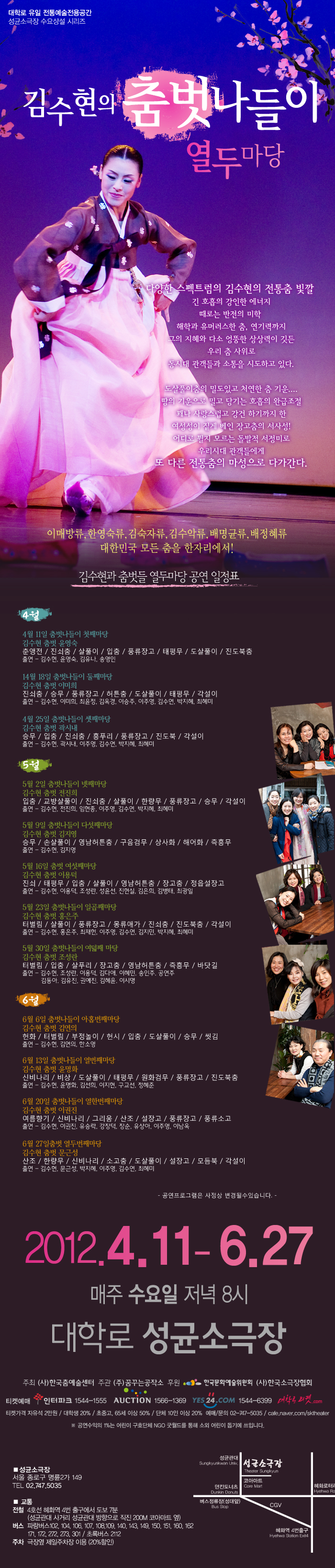 | 공연장르 | 무용(한국무용), [테마] 부모님과 함께 관람, [테마] 혼자 보기 좋은 공연, [추가분류] 초연, [추천연령] 전체, [추천성별] 전체 |
