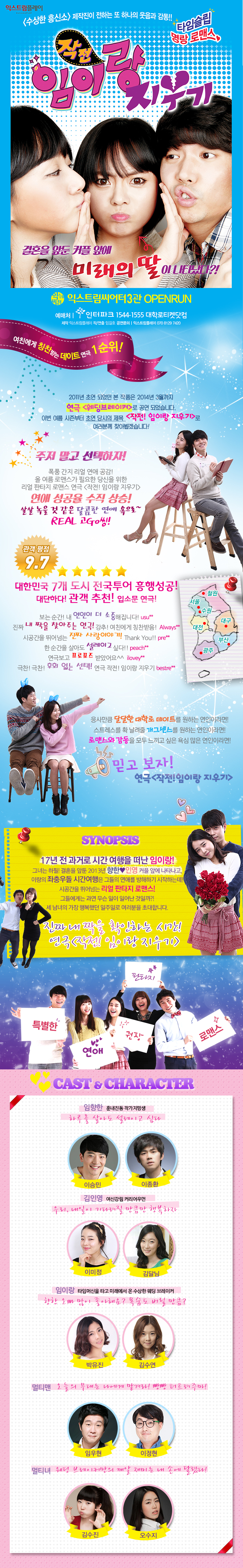 | 공연시간 | 화수목 8시/금 5시,8시/토 2시,5시,8시/일 3시,6시(월 쉼. 단, 5/28 3시,6시 공연. 5/29 공연없음) |