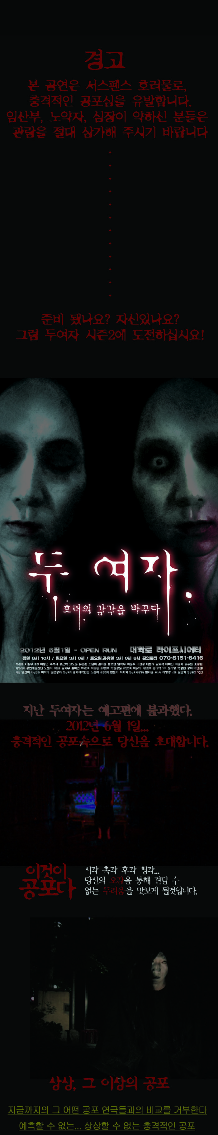 | 공연장르 | 연극(창작), 연극(호러), [테마] 연인 또는 부부, [테마] 아직은 어색한 커플, [추가분류] 앵콜, [추가분류] 오픈런 |