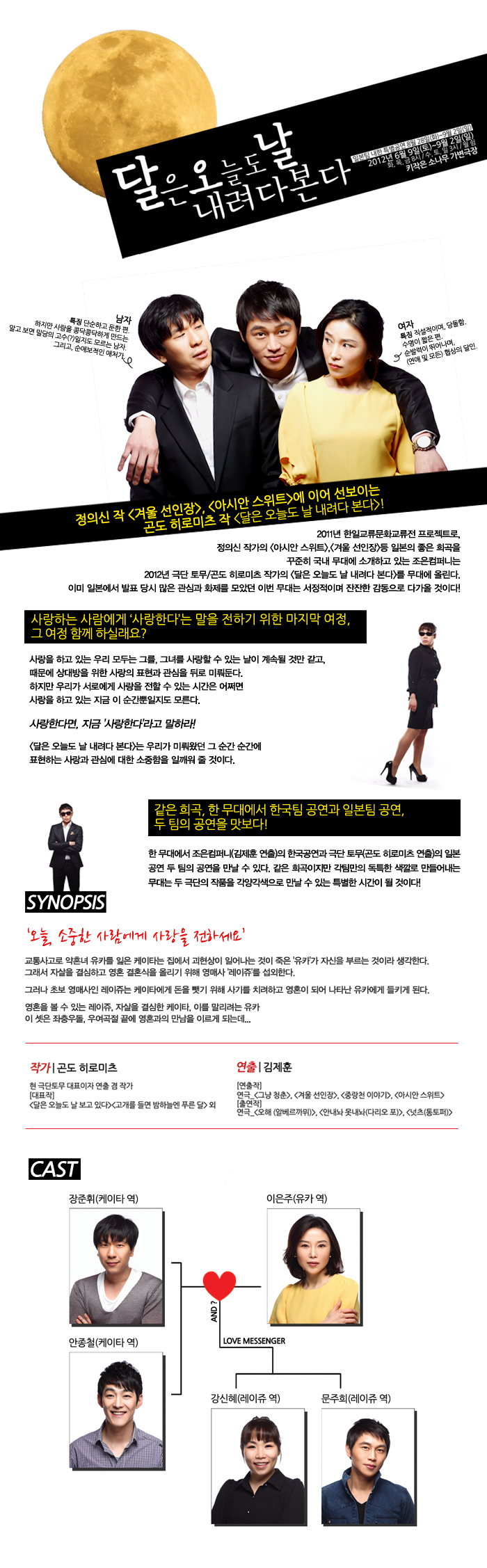 한일문화교류전의 작품이다. 극단 토무(十夢)의 대표이자 원작자인 곤도 히로미츠가 쓴 희곡으로 8월 28일, 오리지널 팀이 내한하여 관객들을 만날