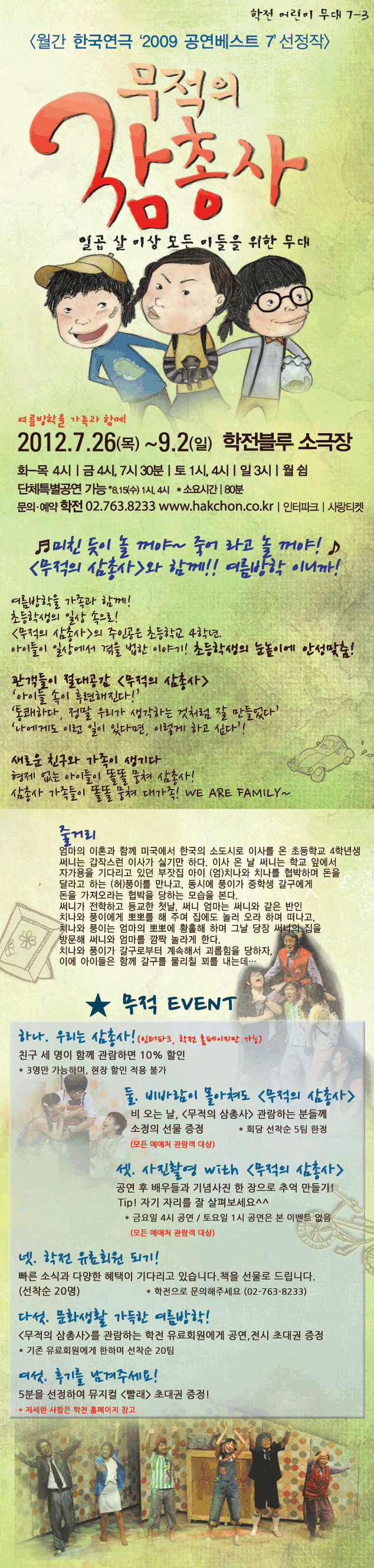 | 공연시간 | 화-목 4시/금 4시,7시30분/토 1시,4시/일 3시(월 쉼. 단, 8/15 1시,4시 2회공연) |