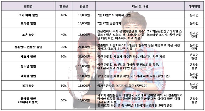 | 티켓가격 | 일반 30,000원/대학생 15,000원/초중고생 10,000원 |