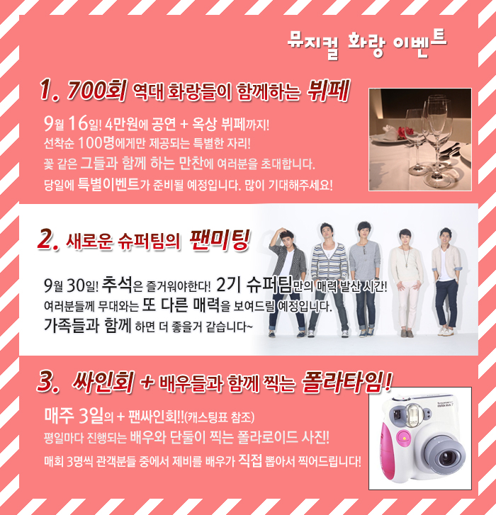 | 공연시간 | 평일 8시 / 토요일, 공휴일 3시, 7시 / 일요일 5시(9/29, 9/30 5시) |