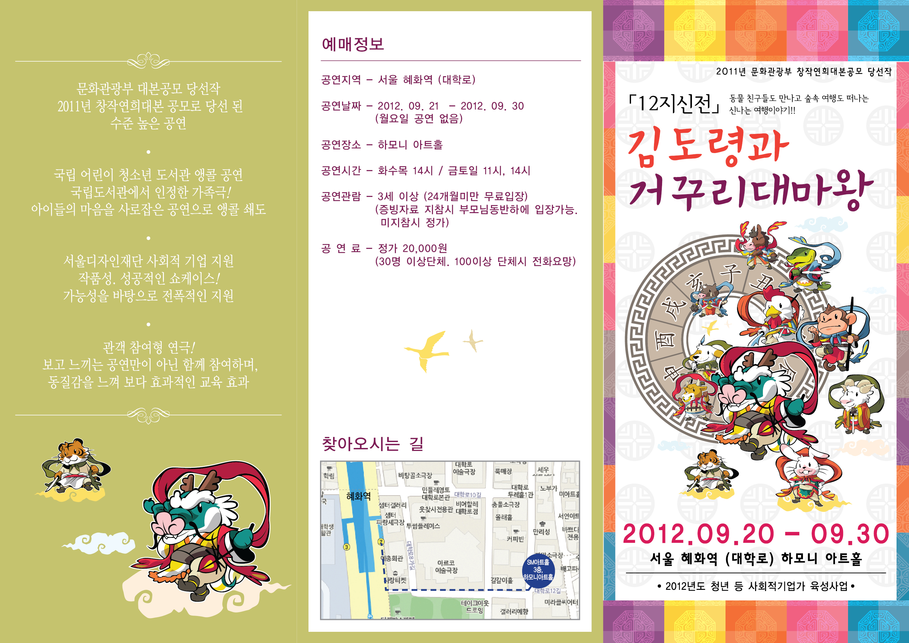 | 공연시간 | 화수목 오후2시/금토일 오전11시,오후2시(월 쉼) |