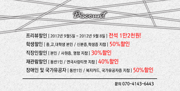 | 공연일자 | 2012-09-05(수) ~ 2012-10-14(일) |